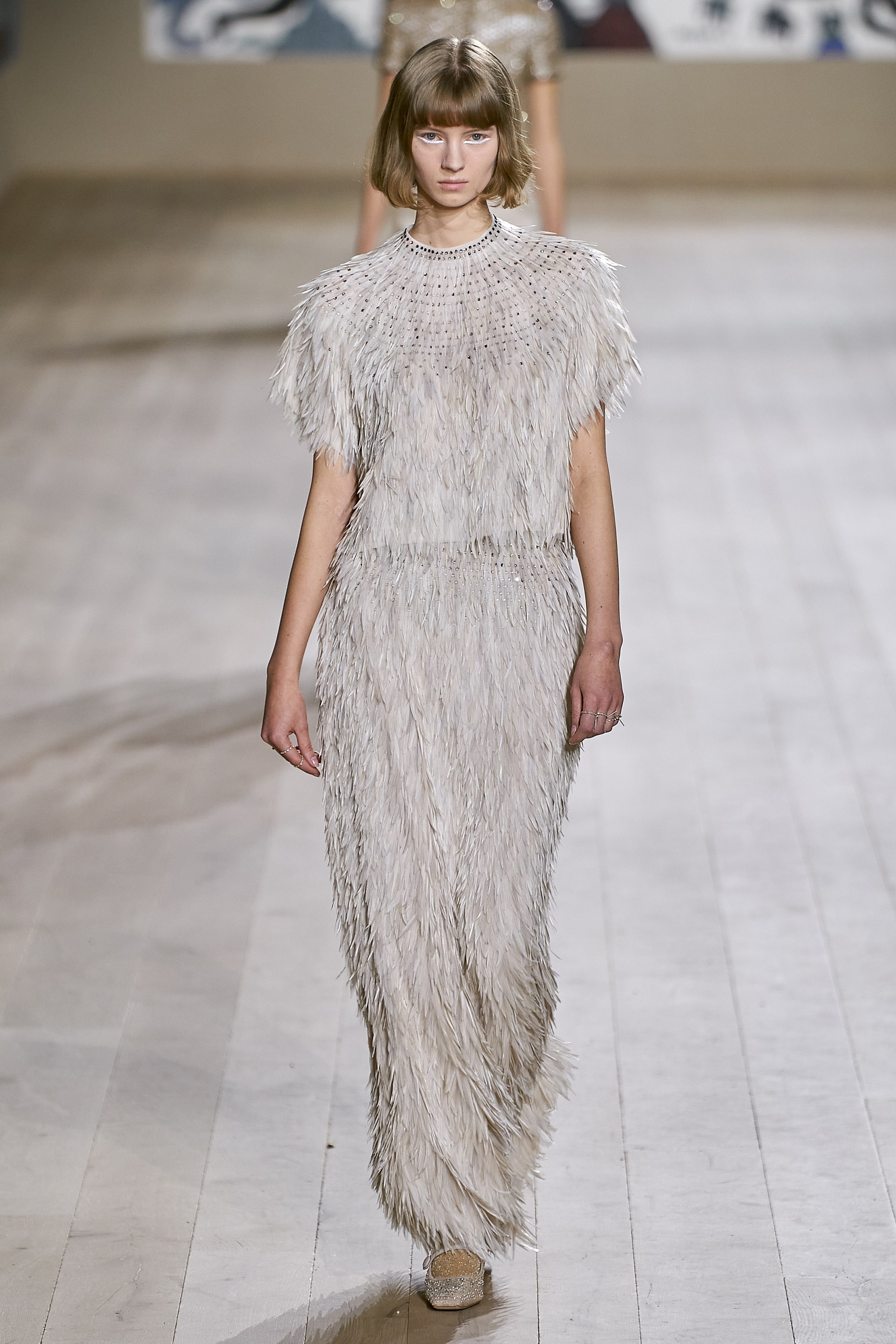 在這個系列裡Maria Grazia Chiuri 著手探索裝飾細節與人體之間的相互作用,為藝術和工藝之間的界限賦予新定義的渴望。 精細的服裝和刺繡與身體及其周圍的空間產生互動,不僅僅是裝飾細節,它也賦予了布料結構及其建築線條。 #傳遞知識的副料大學
