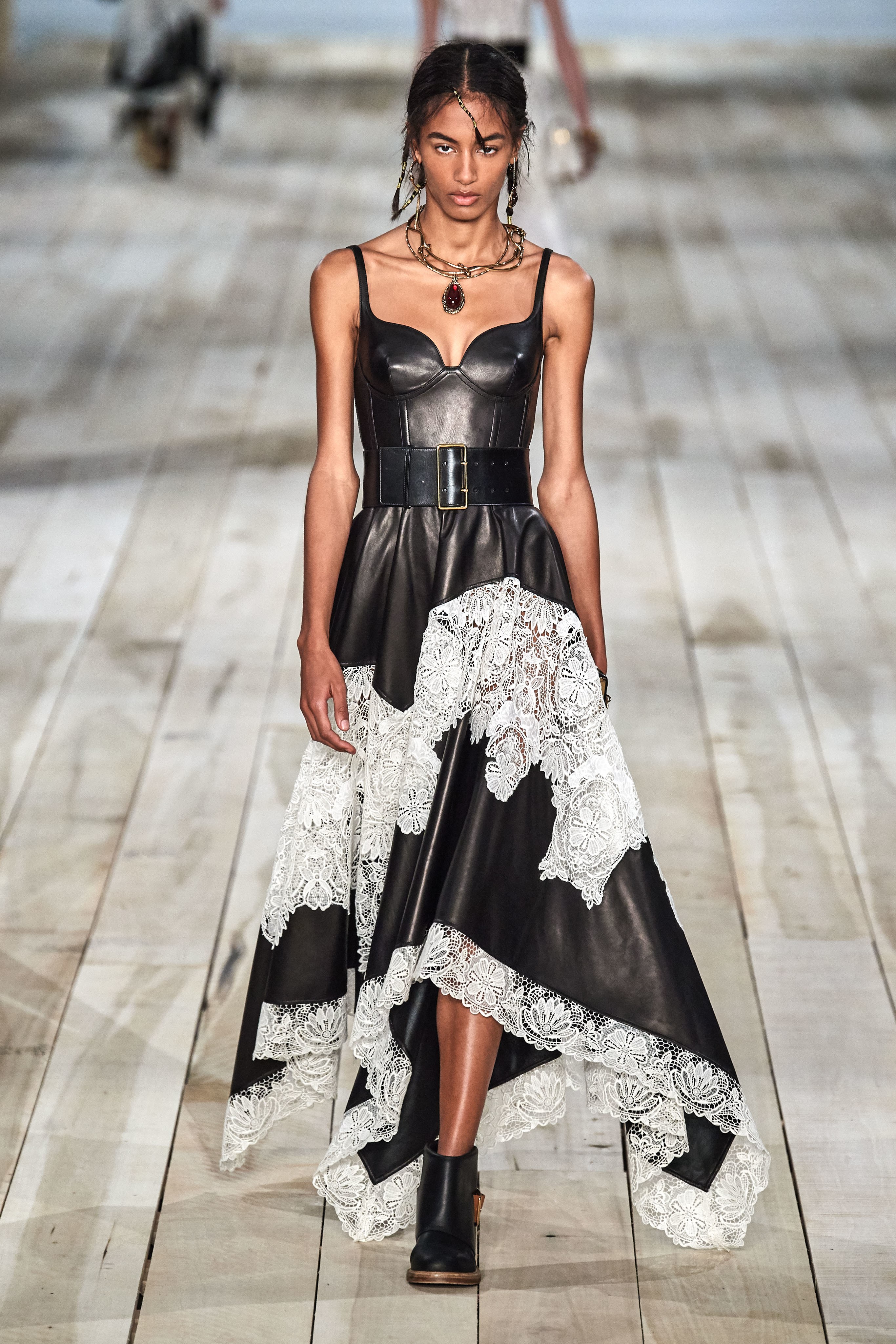 蕾絲與荷葉邊的點綴,繫繩交叉纏繞展露女性線條 皮革與多種副料交織成繁複創新的設計~