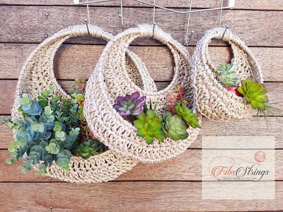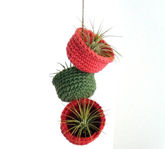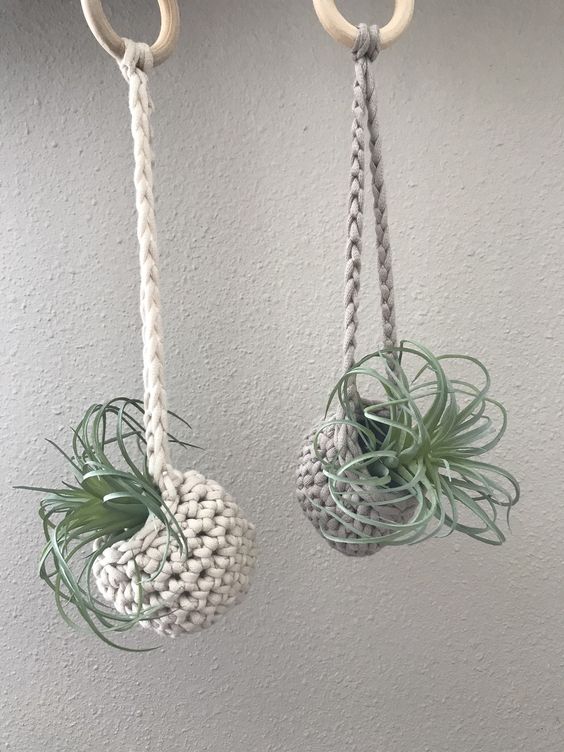 園藝 編織盆 是有用棒針去勾出來的 超適合最近很流行的 空氣植物 擺設 快來看網路高手們的編織盆的作品吧 圖片出處>https://www.pinterest.com