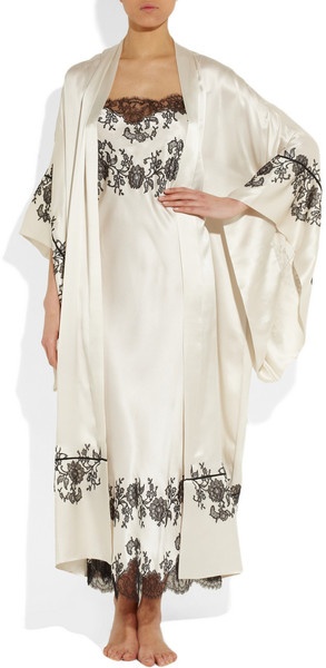 Carine Gilson LaceAppliquéd SilkSatin Robe in White