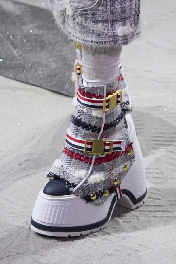 Thom Browne 2023 秋冬系列,以經典的紅藍白條紋織帶點綴於鞋面 #傳遞知識的副料大學